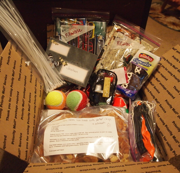 Jonathan writes, "As far as specific baked goods or comfort items are concerned we have no special requests. We're humbled at this distinction and we will happily receive what we're given. I am lucky in that my unit is a humble breed."