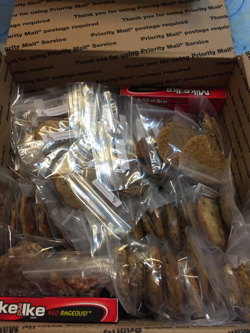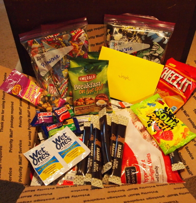 From Angels Sandy....sweet treats and comfort items for our Troops. Thank you, Sandy, for your terrific support of our Troops!