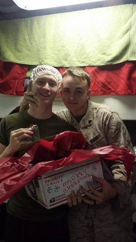 Rachel shares a little about Travis and her son. "It is my pleasure to introduce to you Corporal Francis Brock Jr. and Sergeant Travis Kimble. Two great men that when you are around these guys you laugh so much your stomach hurts. Their duties are endless and you can count on them through and through. They are both with H&S Co. Communications and are being deployed on a MEU soon and will be gone through the Holidays. Also, Corporal Francis Brock's birthday is November 10th, the Marine Corp Birthday."