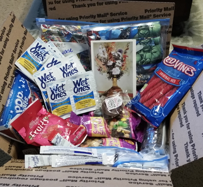 Many thanks to our 21+ Angels who have contributed to this month's team! You constantly amaze me in your ample support of our Troops! Enjoy a few photos of our Angel Goodie Boxes heading to Team Raptors!