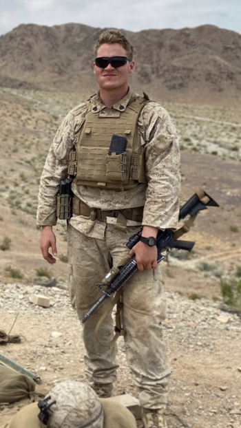 Karen writes, "Sgt McCarty is two months into his 6th year as a Marine. He went to college and played college football before becoming a Marine. He loves to read and watch movies. He can recite the lines from almost any movie. He loves history."